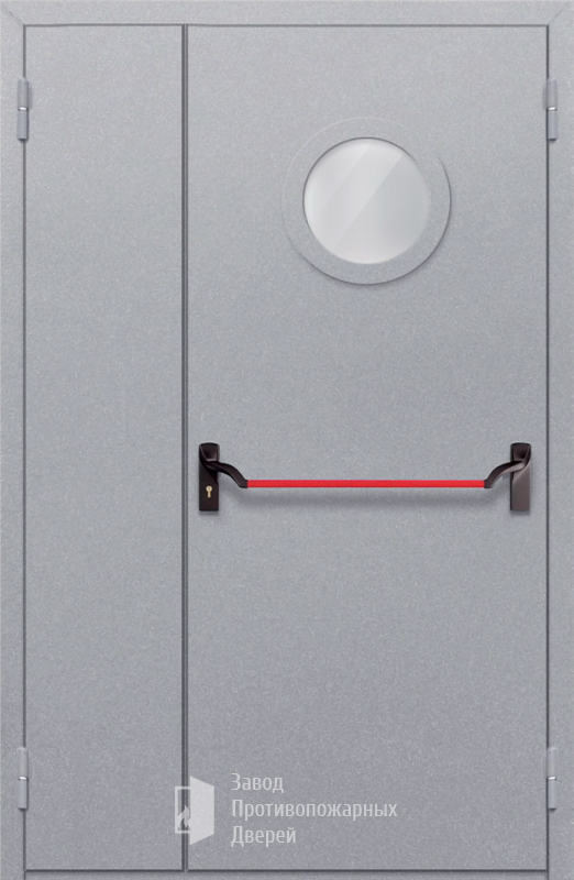 Маркировка Противопожарная Полуторная дверь с круглым стеклом ДПМ-02-EIWS30 с антипаникой