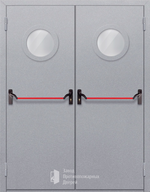 Противопожарная Двупольная дверь с круглым стеклом ДПМ-02-EIWS60 с антипаникой |
