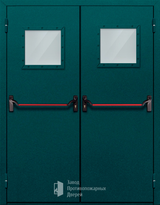 Маркировка Противопожарная Двупольная дверь с квадратным стеклом ДПМ-02-EIW60 с антипаникой