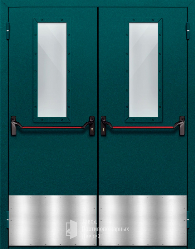 Противопожарная Двупольная дверь с прямоугольным стеклом ДПМ-02-EIW60 с антипаникой |