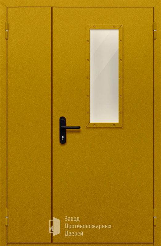 Маркировка Противопожарная Полуторная дверь с прямоугольным стеклом ДПМ-02-EIW60