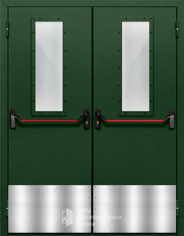 Маркировка Противопожарная Двупольная дверь с прямоугольным стеклом ДПМ-02-EIW120 с антипаникой