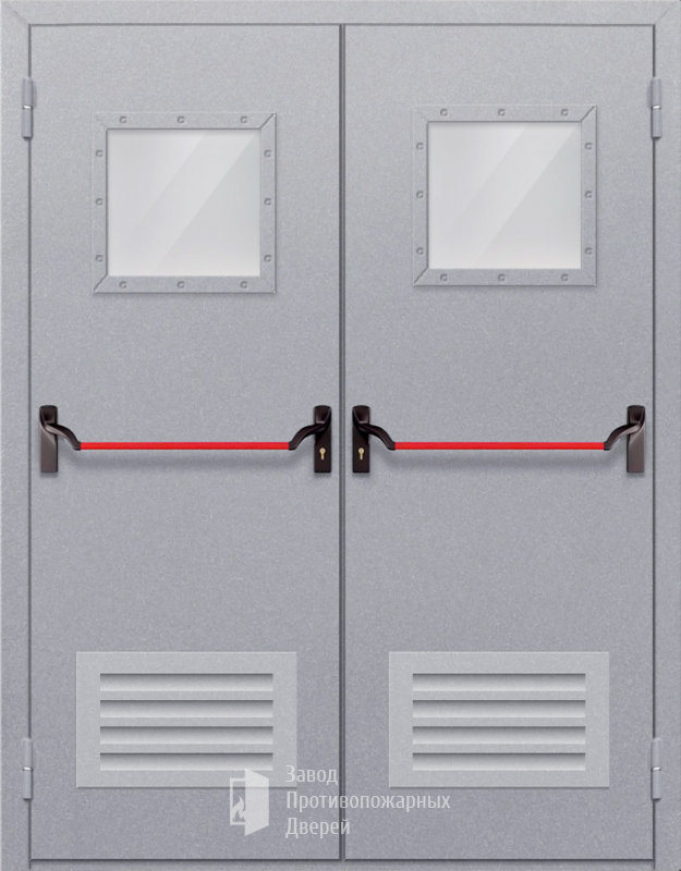 Маркировка Противопожарная Двупольная дверь с квадратным стеклом ДПМ-02-EIW60 с решеткой и антипаникой