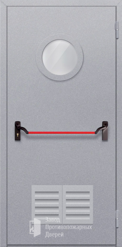 Маркировка Противопожарная Однопольная дверь с круглым стеклом ДПМ-01-EIW60 с решеткой и антипаникой