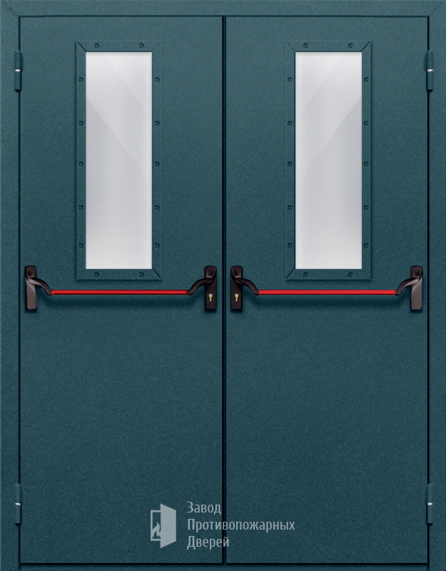 Противопожарная Двупольная дверь с прямоугольным стеклом ДПМ-02-EIW60 с антипаникой |